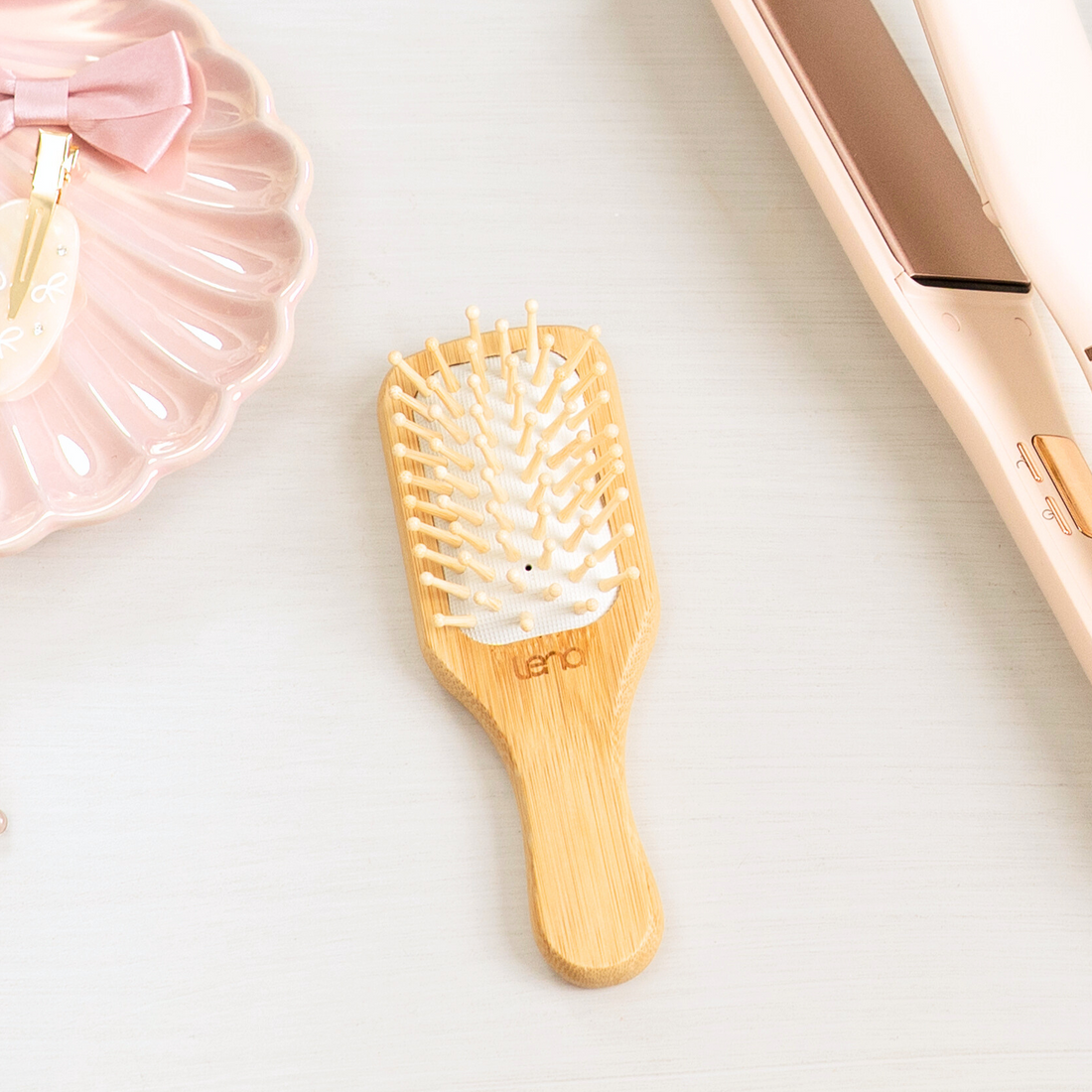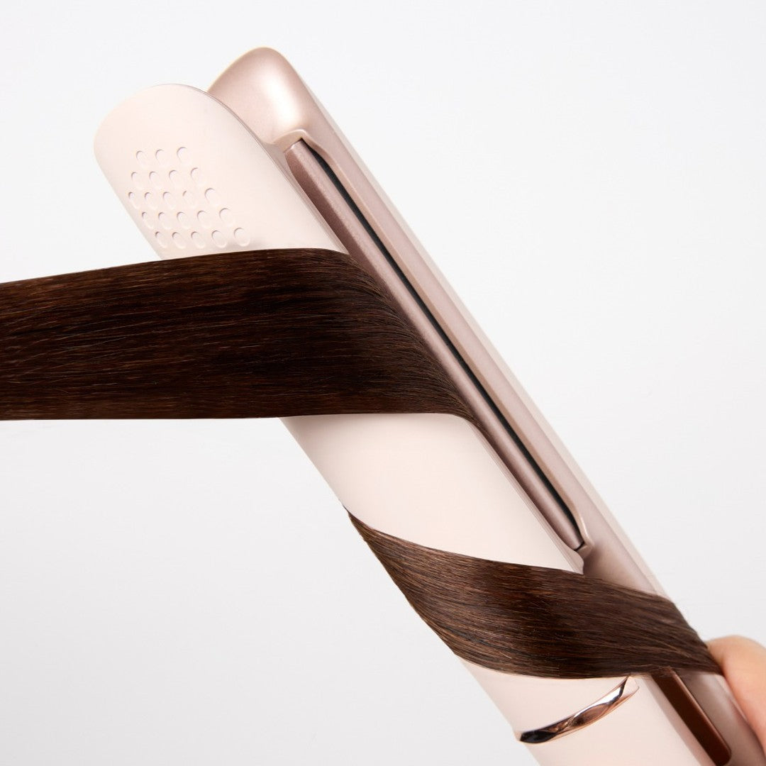 サロン級のストレートアイロンに、毎日のスタイリングをサポートするパドルブラシとヘアクリップを添えてラッピング。