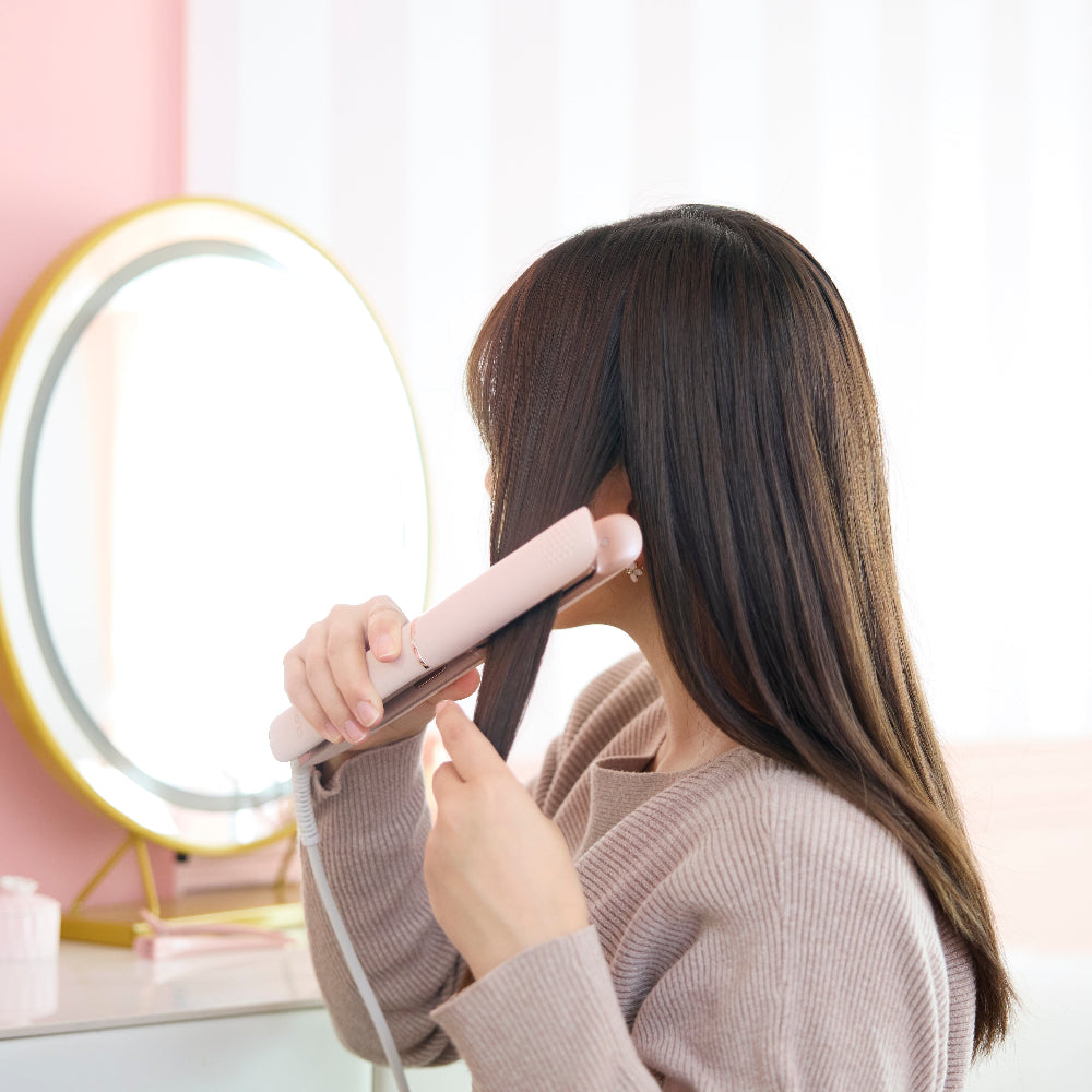 ヘアアイロン用スタイリング剤をご使用の際も、ドライヤーでブローし、完全に乾いた状態でご使用いただく事で、ダメージ軽減とスタイリングの持ちを良くする事ができます。