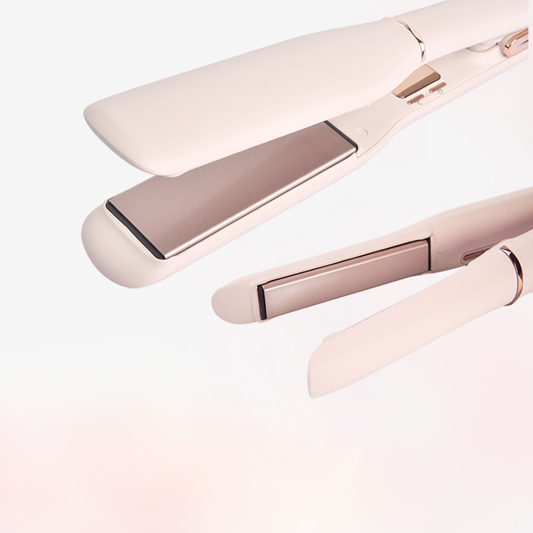 ワイドストレートアイロンとミニストレートアイロンのセット。