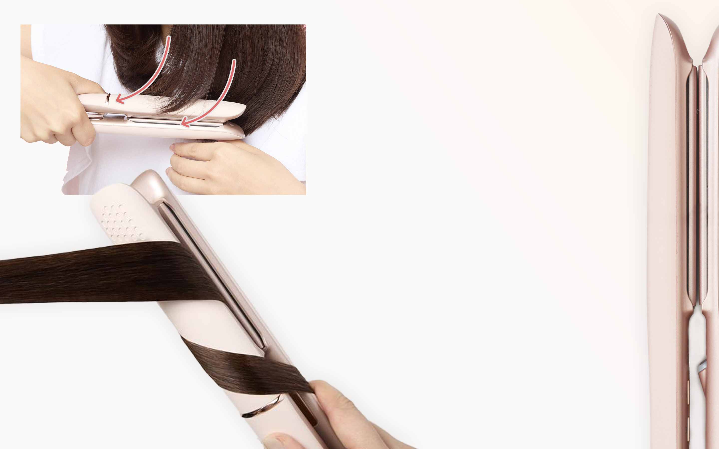 植物性のオイルコーティングを施したプレートがなめらかな滑り⼼地でサラ艶ヘアへと導きます。また、髪をしっかりとクセづけてくれるので⼣⽅までスタイリングをキープ◎