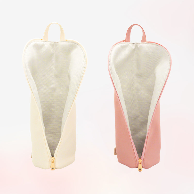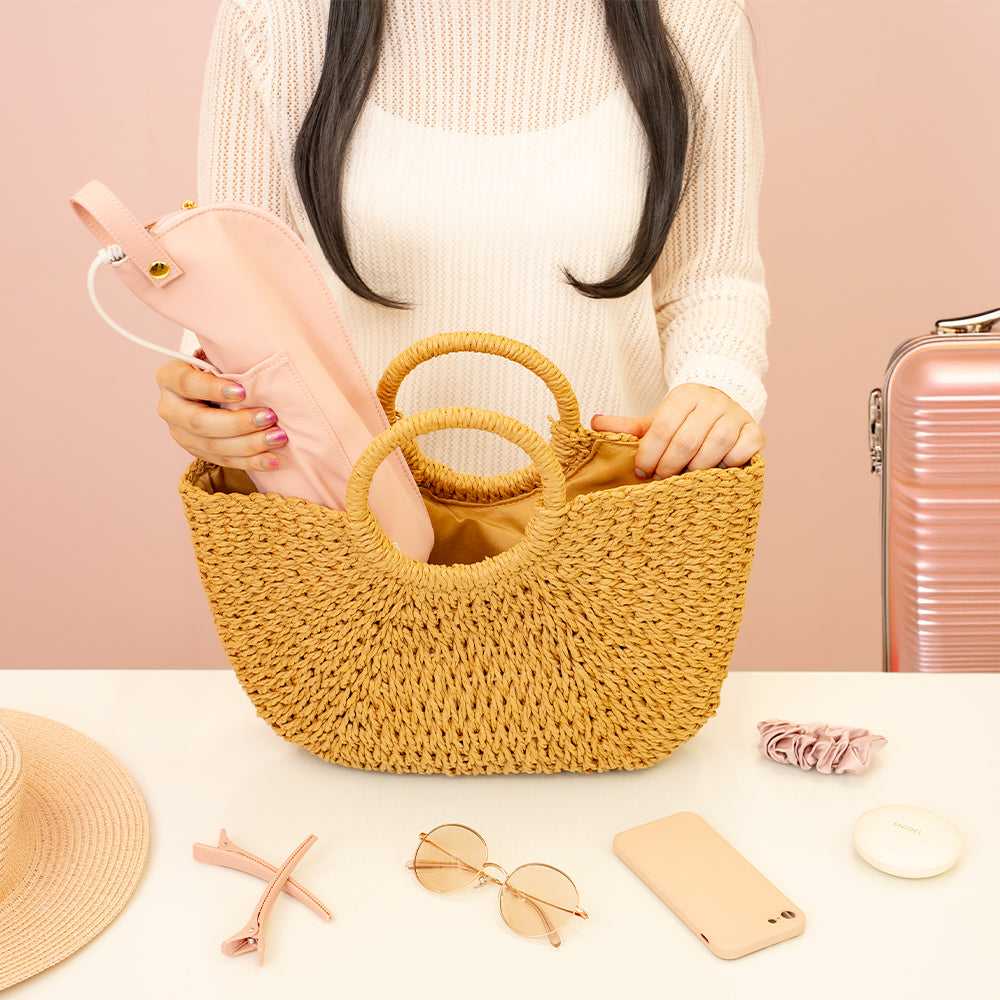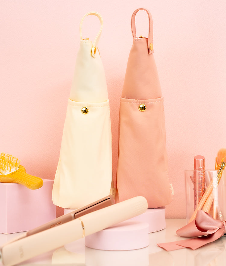 旅行先に持ち運びやすく、熱いまま収納できる耐熱ポーチ付き。